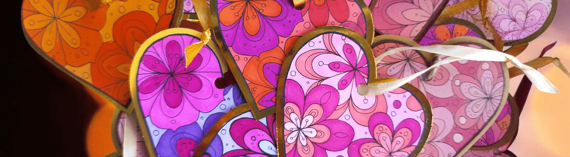 Five hearts of different colours and design variations are in each set.